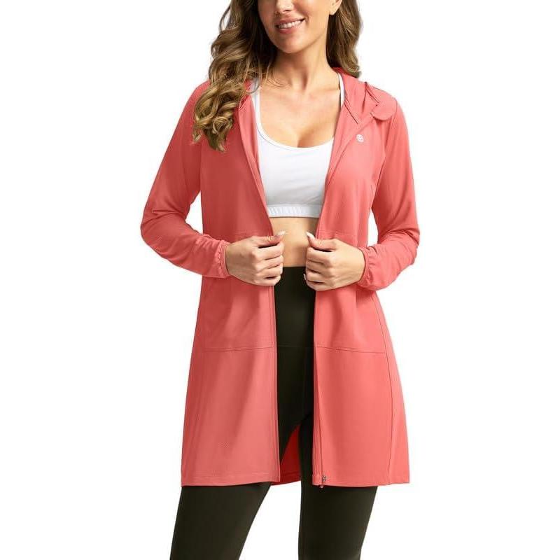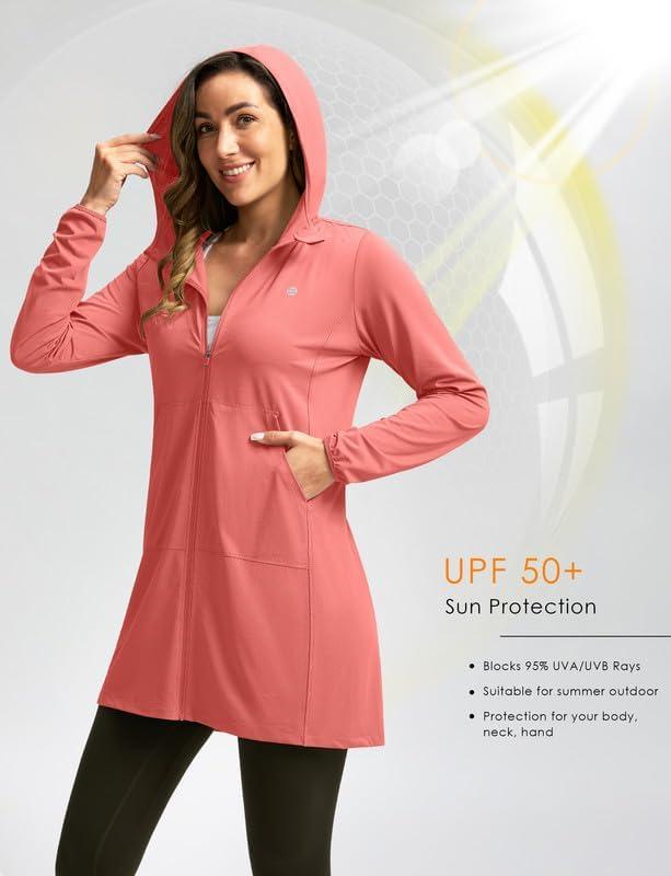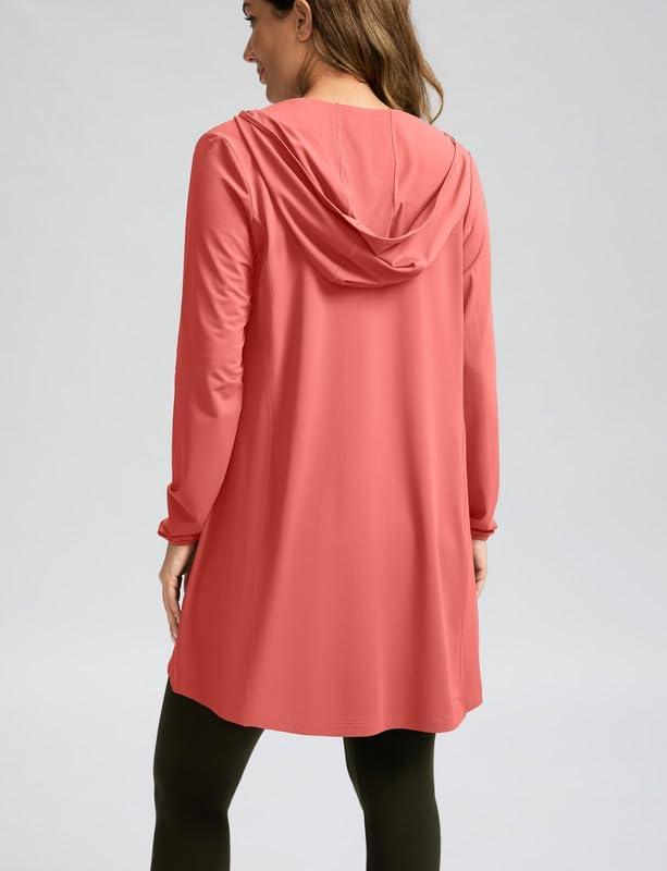 Women's UPF 50+ Swim Cover Up Sun Protection Hoodie Long Jacket SPF Lightweight Beach Cover Ups for Women(Coral)