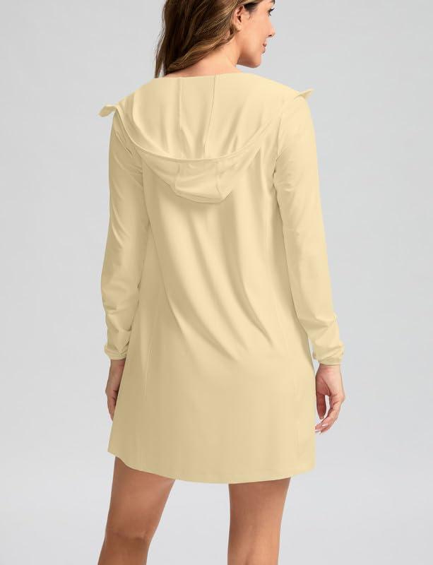 Women’s UPF 50+ Swim Cover Up Sun Protection Hoodie Long Jacket SPF Lightweight Beach Cover Ups for Women(Yellow)