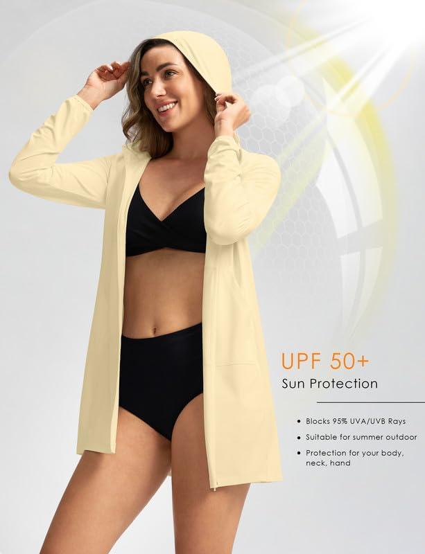 Women's UPF 50+ Swim Cover Up Sun Protection Hoodie Long Jacket SPF Lightweight Beach Cover Ups for Women(Yellow)