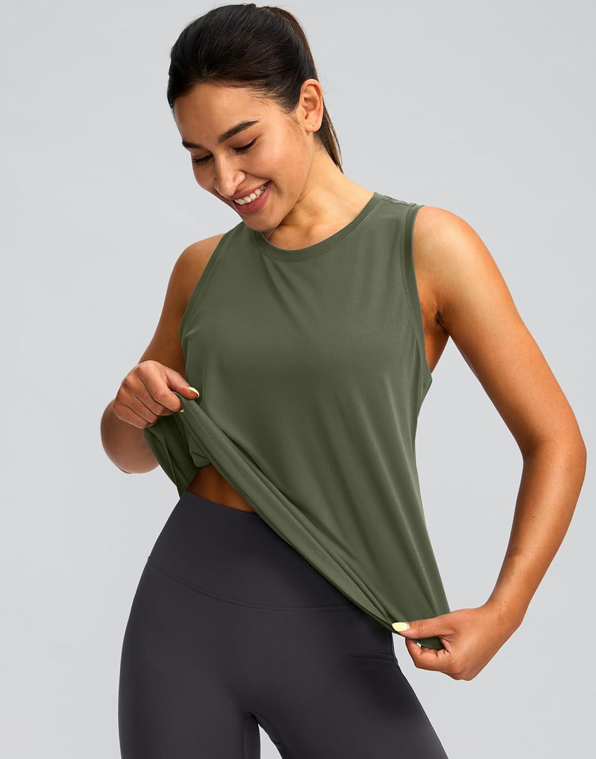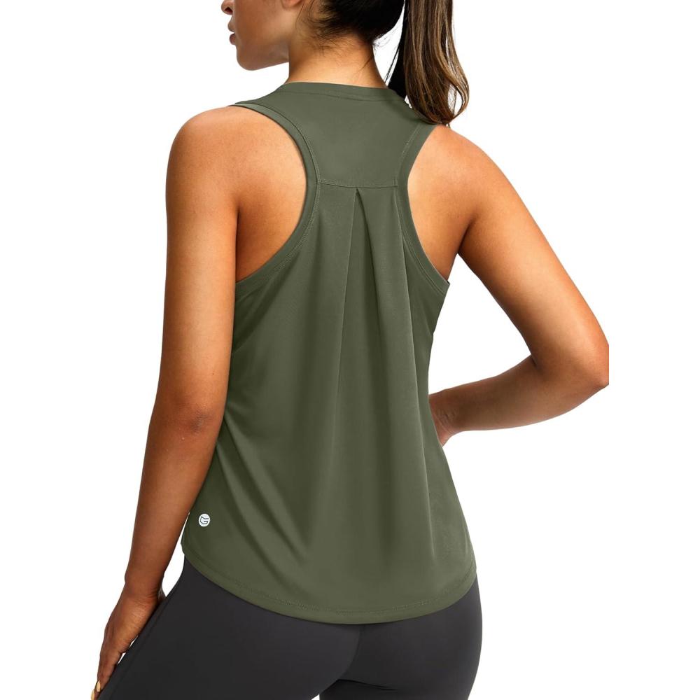 Women's Workout Tops Racerback Athletic Tank Tops Sleeveless Loose Fit Yoga Running Gym Shirts for Women(Olive)