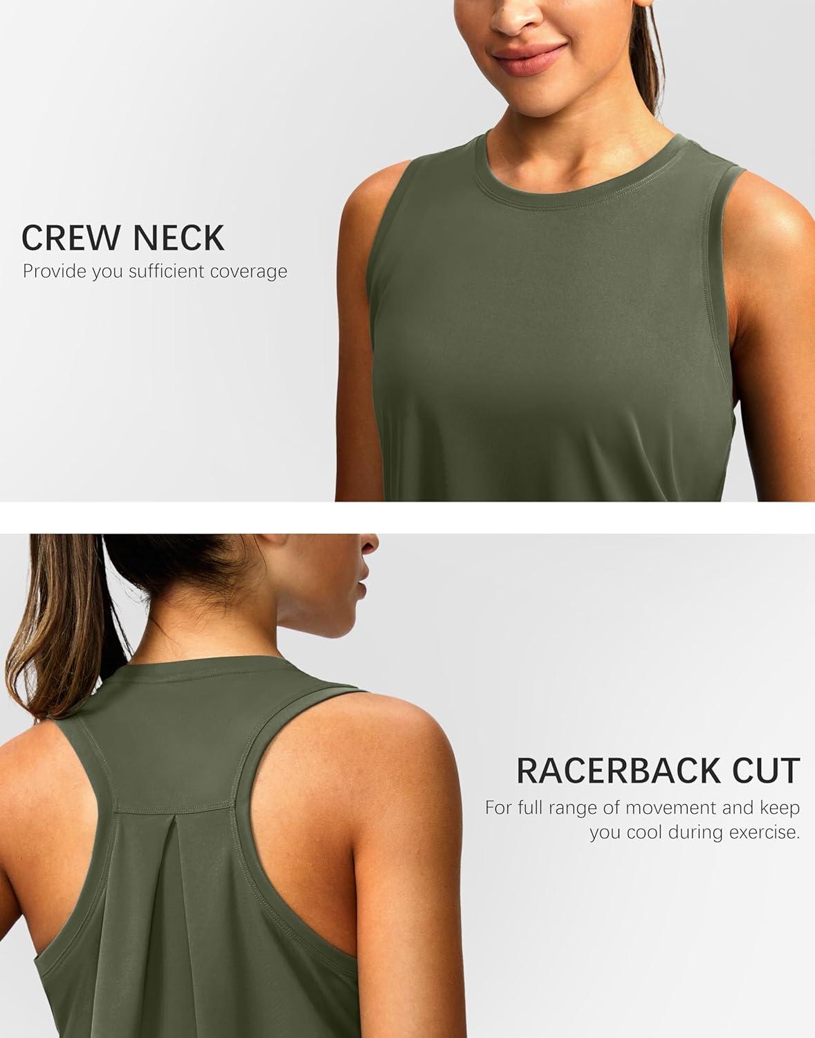 Women’s Workout Tops Racerback Athletic Tank Tops Sleeveless Loose Fit Yoga Running Gym Shirts for Women(Olive)