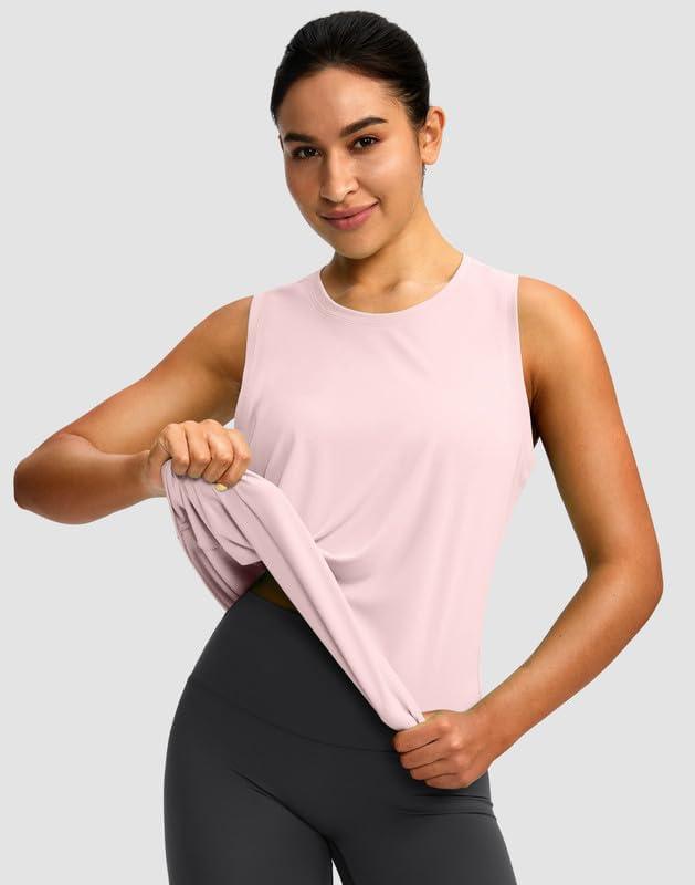 Women's Workout Tops Racerback Athletic Tank Tops Sleeveless Loose Fit Yoga Running Gym Shirts for Women(Pink)