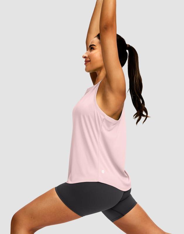 Women’s Workout Tops Racerback Athletic Tank Tops Sleeveless Loose Fit Yoga Running Gym Shirts for Women(Pink)