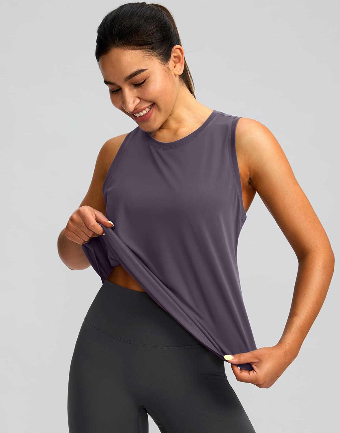 Women's Workout Tops Racerback Athletic Tank Tops Sleeveless Loose Fit Yoga Running Gym Shirts for Women(Purple Grey)