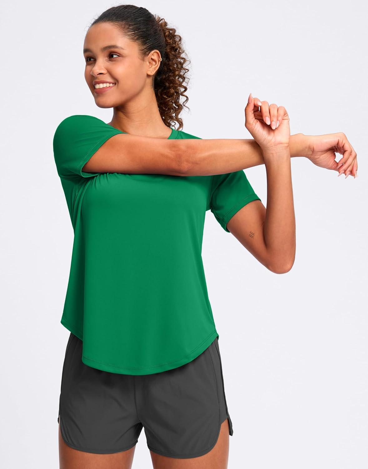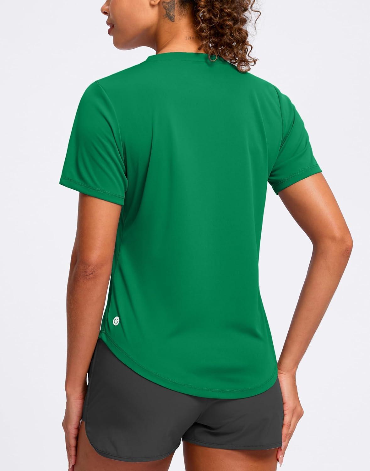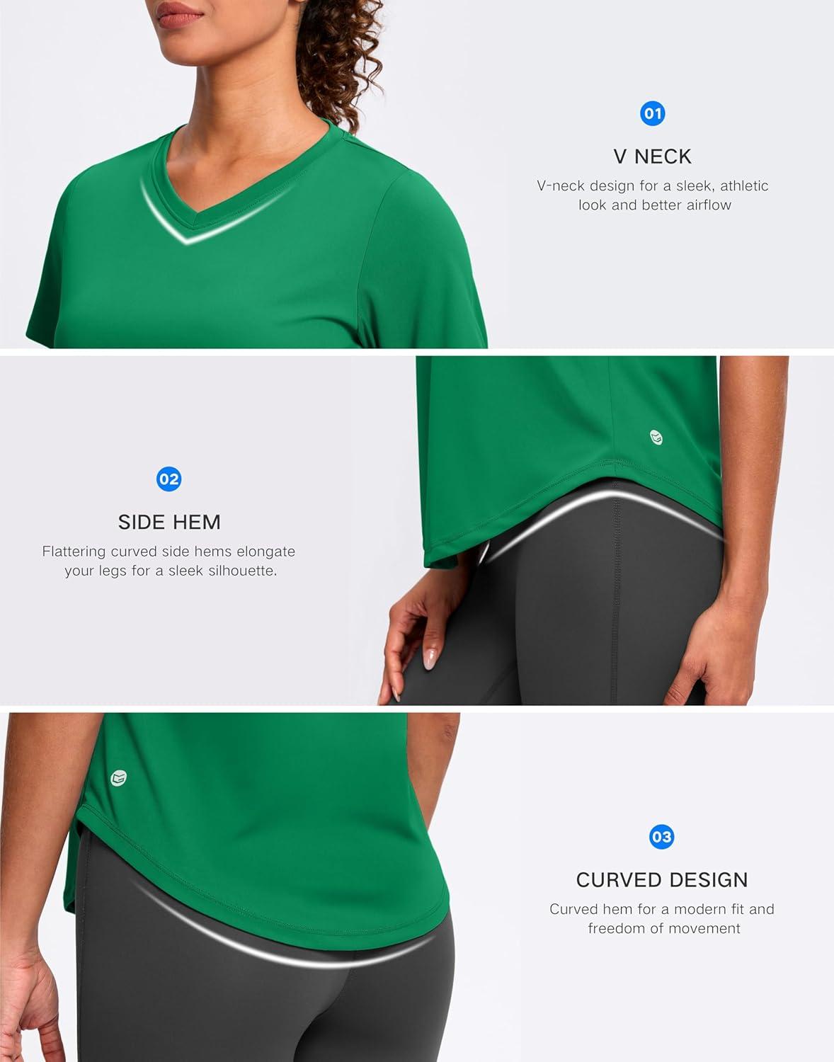 Womens Workout Tops V-Neck Short Sleeve UPF 50+ Sun Shirt Moisture Wicking Quick Dry Top for Gym, Running, Athletic(Green)